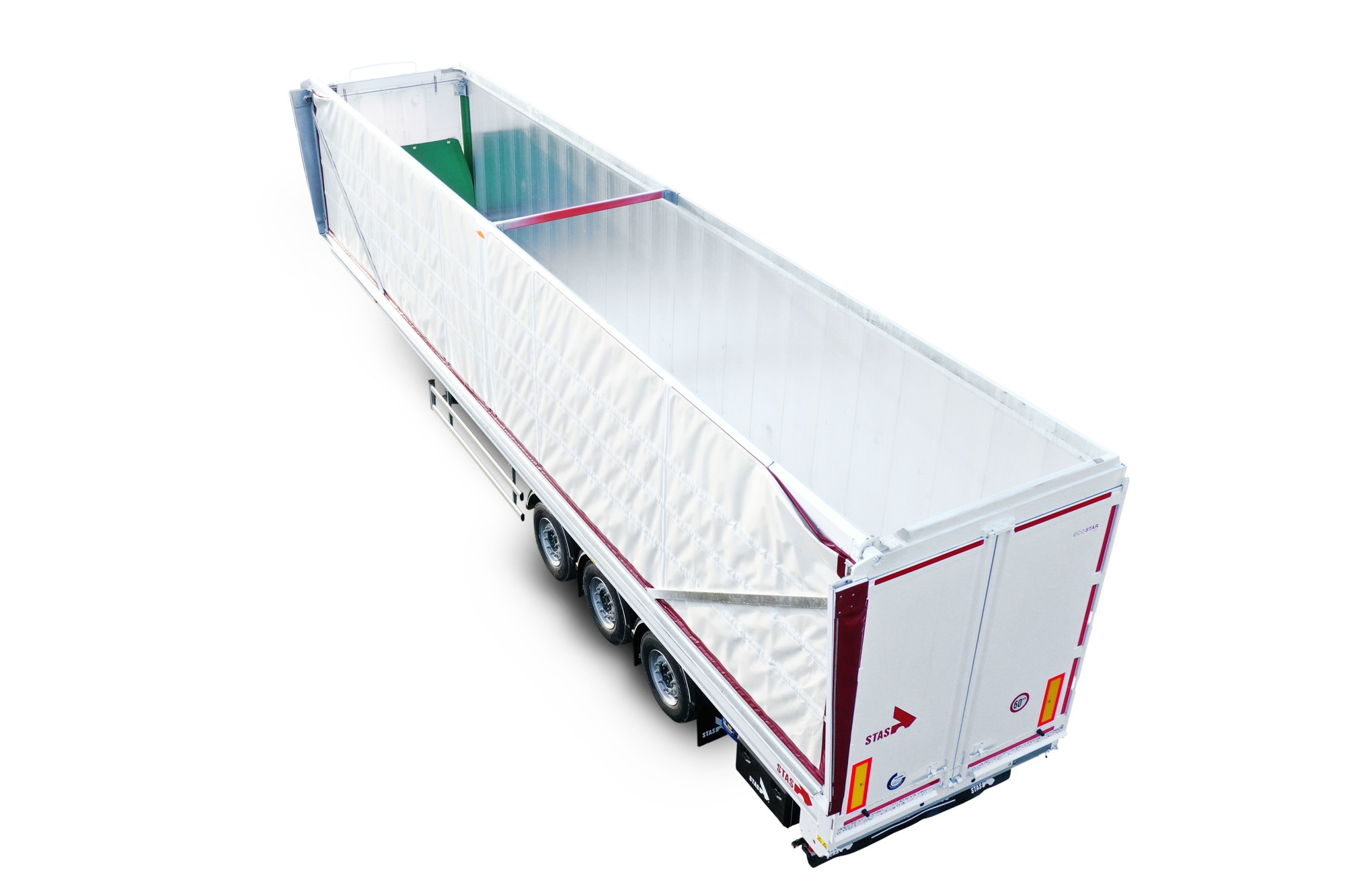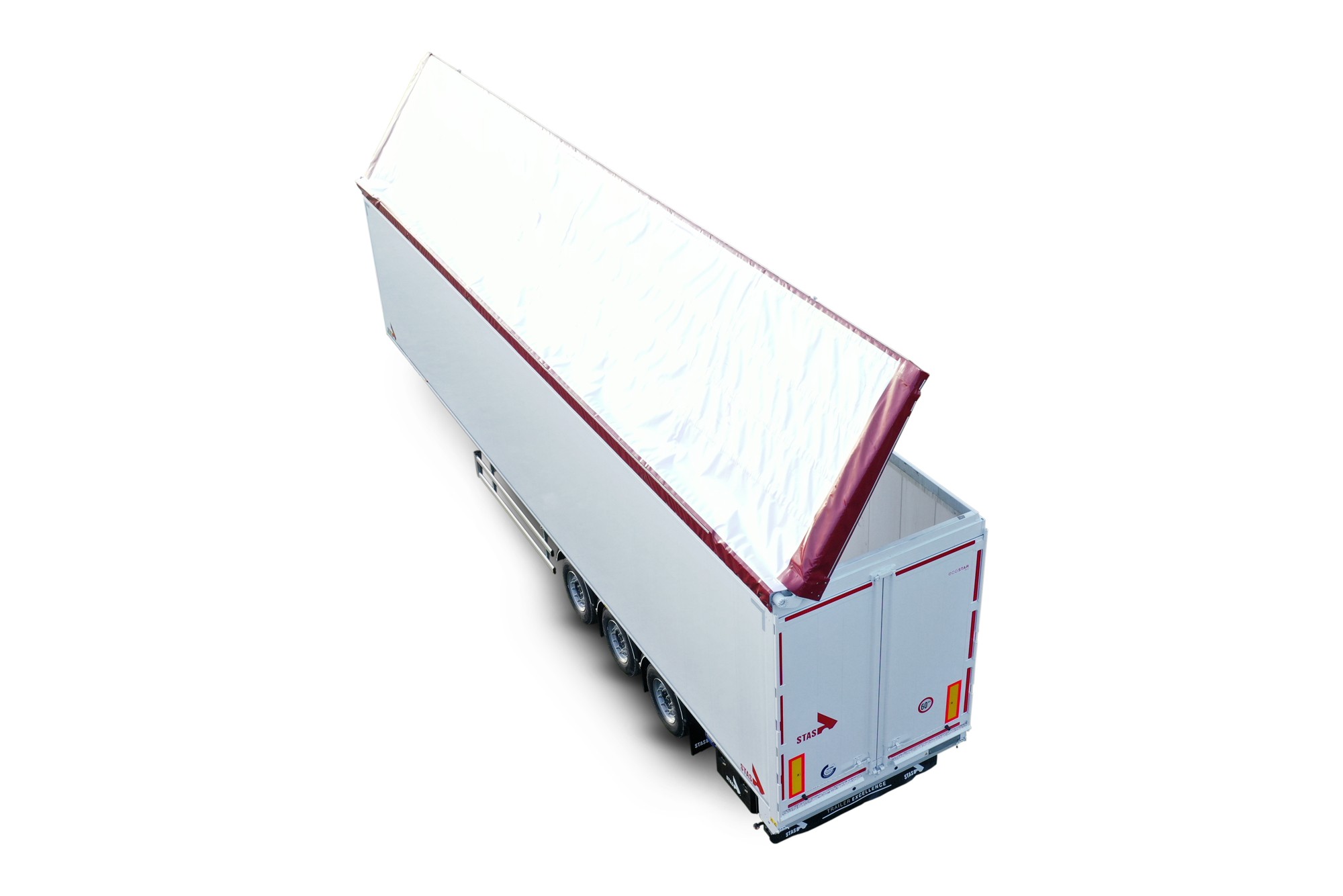 The singe-winged hydraulic roof system is the ideal solution if your load cannot get wet from rainfall.