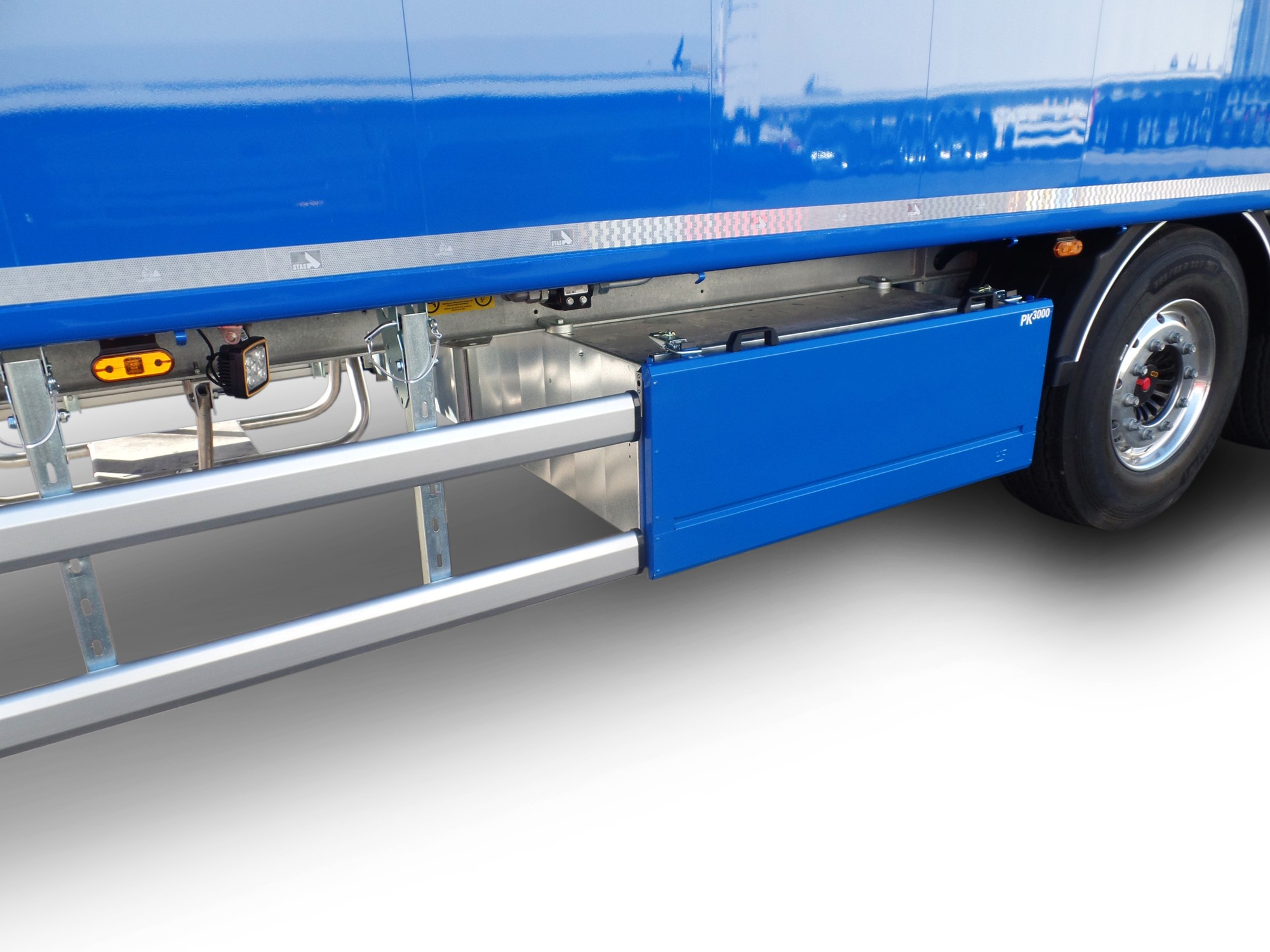 The pallet box gives you the possibility to carry extra pallets. The box can be opened on both the left and right sides.