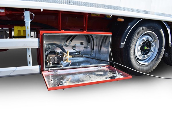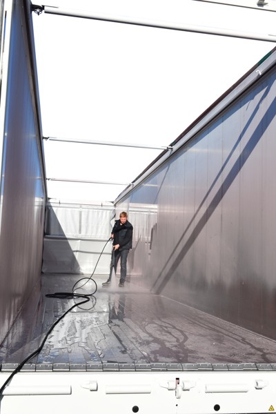 Rezervoar za vodu volumena 400 litara u kombinaciji s hidrauličnim visokotlačnim peračem omogućuje vam da cijelu prikolicu s pokretnim podom održavate u najboljem mogućem stanju. Visokotlačni perač radi na hidraulični pogon tako da vam nije potreban vanjski izvor energije za pranje prikolice s pokretnim podom. Možete bez ikakvog napora održavati pokretni pod čistim, što znači da prevozite manje nečistoća uz veću nosivost.