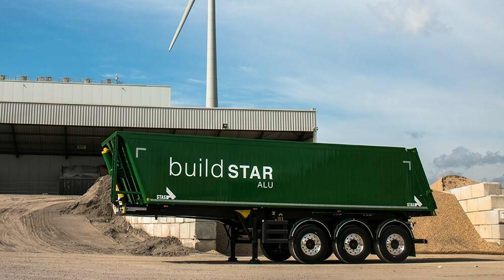 Der Buildstar ist ein als Auflieger ausgeführter Baukipper, dessen Fahrgestell und Mulde vollständig aus hochwertigen Aluminiumlegierungen gefertigt sind. Die Seitenwände bestehen aus Profilelementen, die einerseits ein wenig isolierend wirken und andererseits auch von innen ausgehende Stoßschäden an der Außenseite begrenzen. |