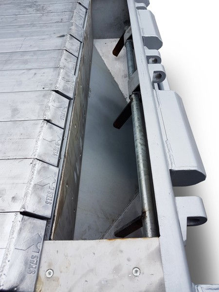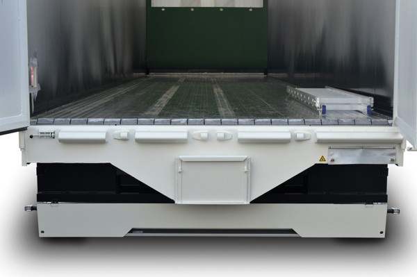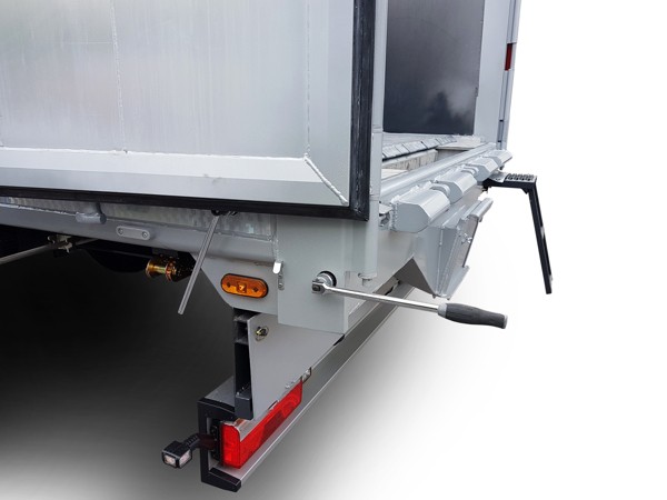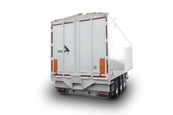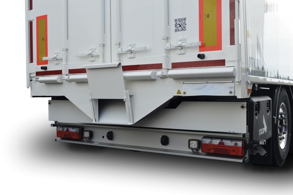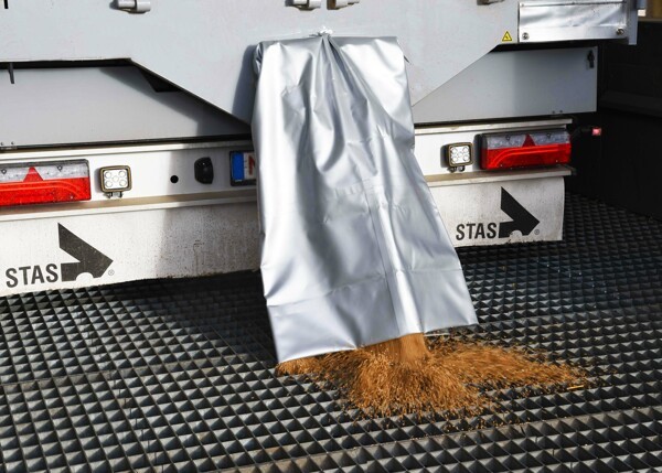 Der an der Rückseite Ihres Schubbodenaufliegers integrierte Getreidetrichter ermöglicht es, die gesamte Ladung problemlos und ordentlich einem Entladeschacht zuzuführen. Da der Trichter im Laderaum verschlossen werden kann, bleibt auch die konventionelle Entladung möglich.