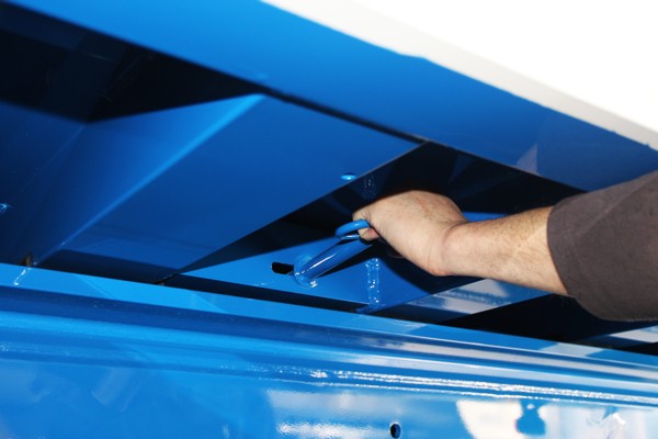 Ta možnost vam omogoča, da odprete vrata hleva, medtem ko ste ob boku vašega vozila. To pomeni, da vozniku ni treba biti na koncu polpriklopnika, da bi odprl vrata, s čimer se izogne padcu tovora na voznika. Poleg tega je ta možnost izjemno primerna za razkladanje na mestih z globokim, velikim odlagališčem. Ta možnost omogoča vozniku, da pripelje do odbojnih blokov in nato s kablom preprosto odpre vrata.
